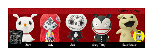 This spook-tacular collector's set comes with five fun and cute Nightmare Before Christmas character key rings. Featuring Zero, Sally with Spider Face Tattoo, Jack with Floral Face Tattoo, Scary Teddy, and a Pudgey Oogie Boogie. This set makes a great gift for the holiday time and all year round for NBX fans.